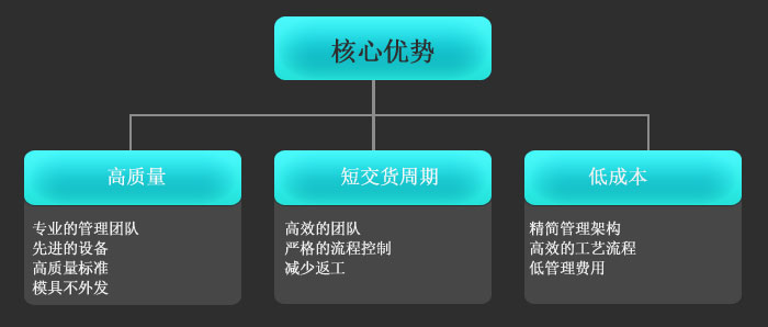 我们致力于提升模具制造技术,缩短交货周期,为客户提供合理的价格,满足客户的质量要求,实现长期共赢的合作关系。